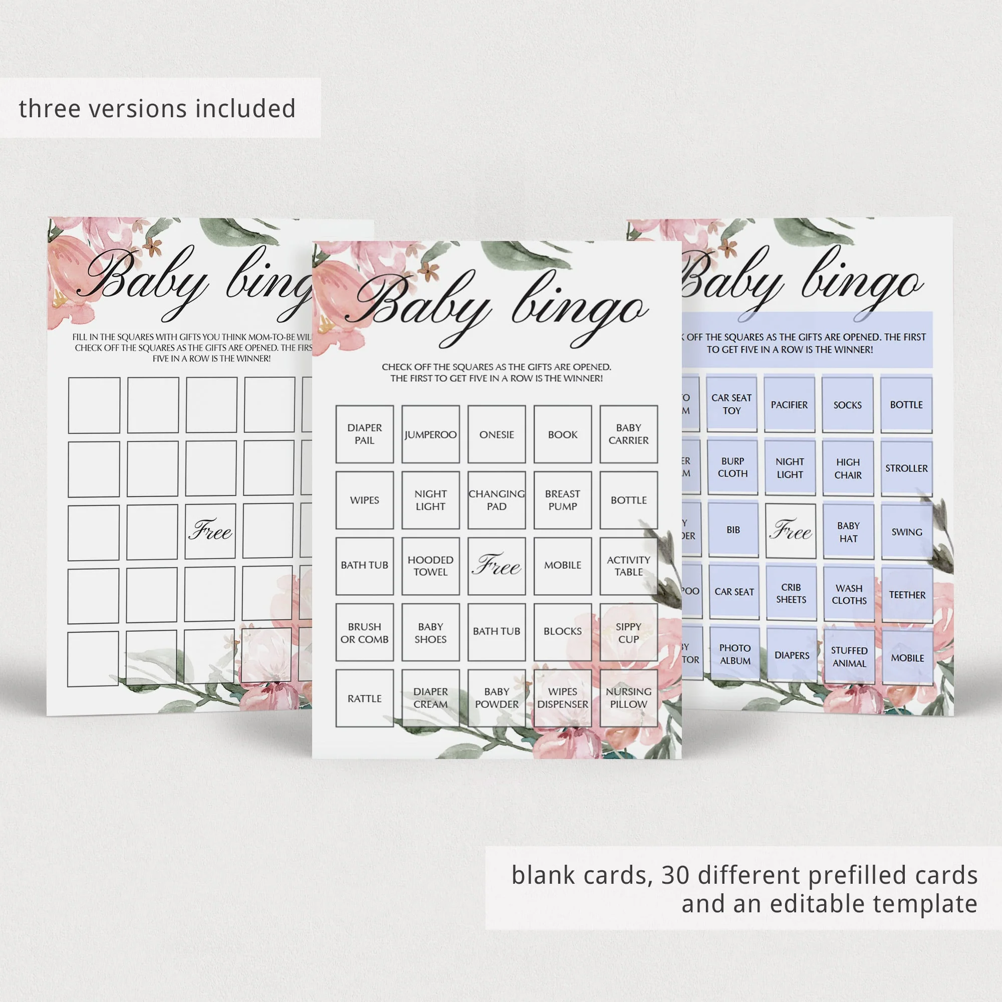 Blush Pink Baby Bingo Cards - Watercolor Florals