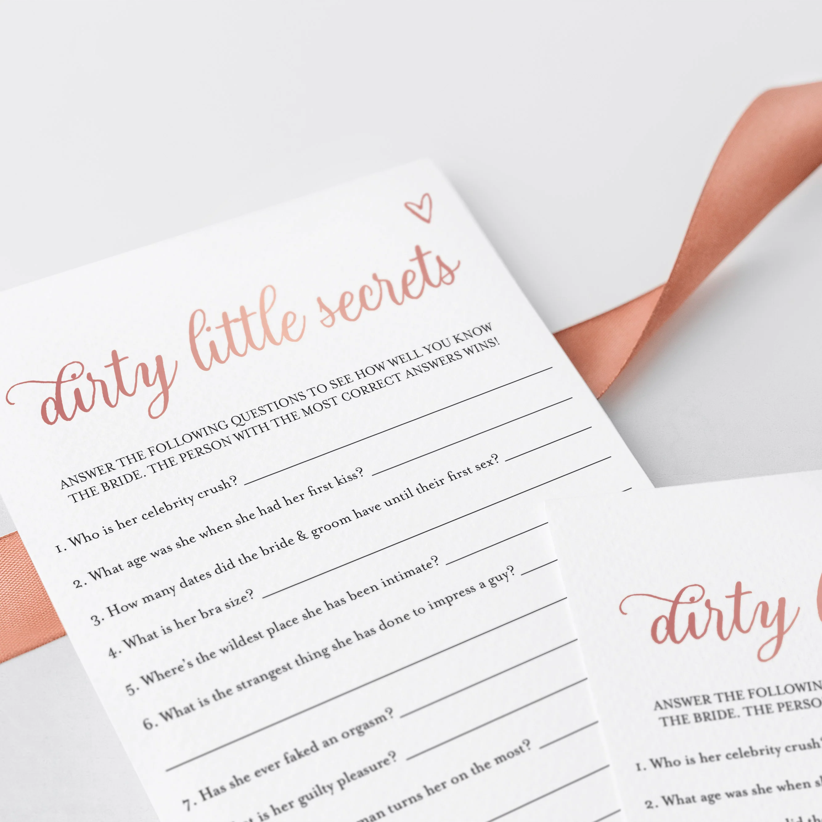 Brides Dirty Little Secrets Game Printable Rose Gold