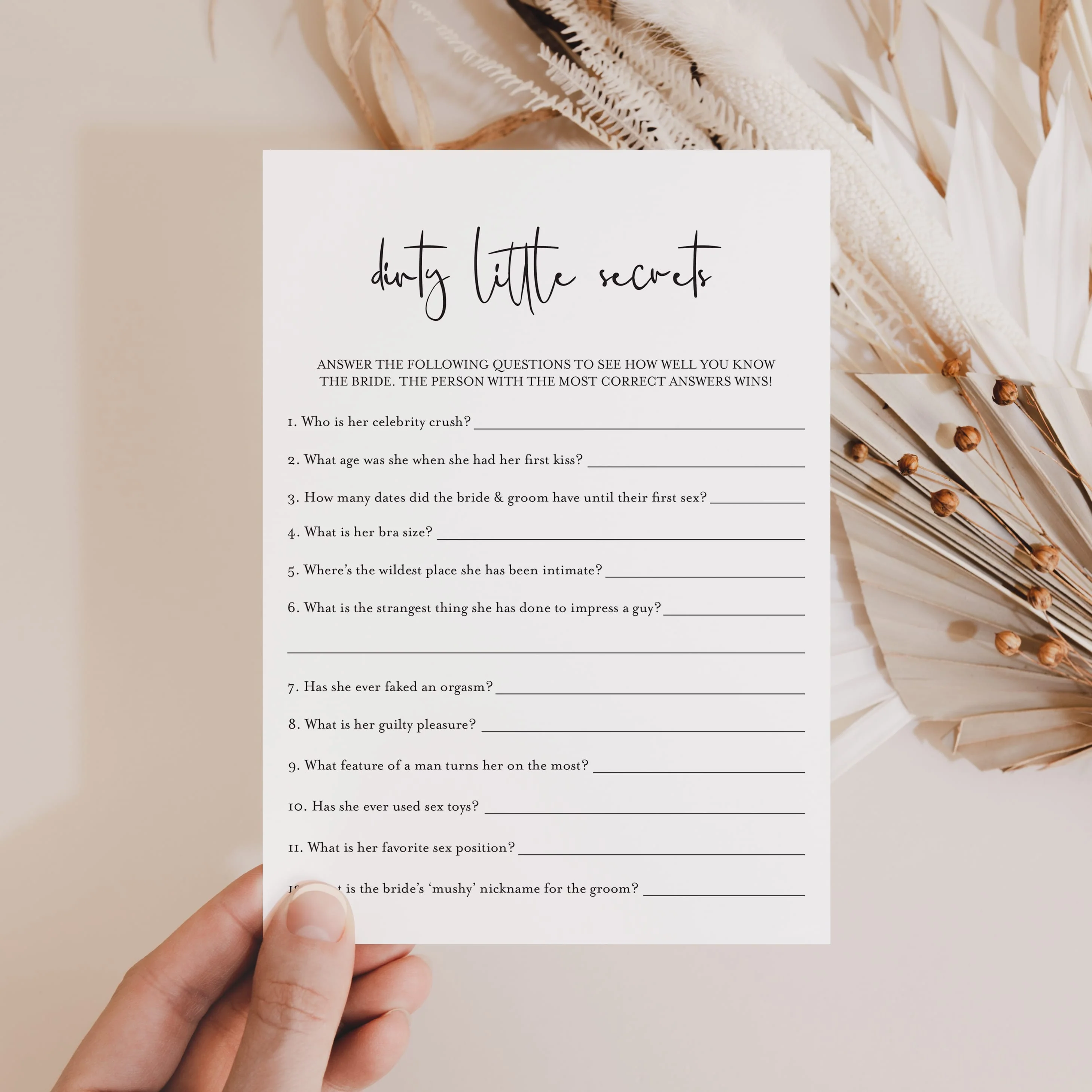 This dirty bachelorette quiz an instant download. After purchase you will receive a download link immediately on screen. Also within minutes of your order and payment, an e-mail will be sent to you with a link for your download.