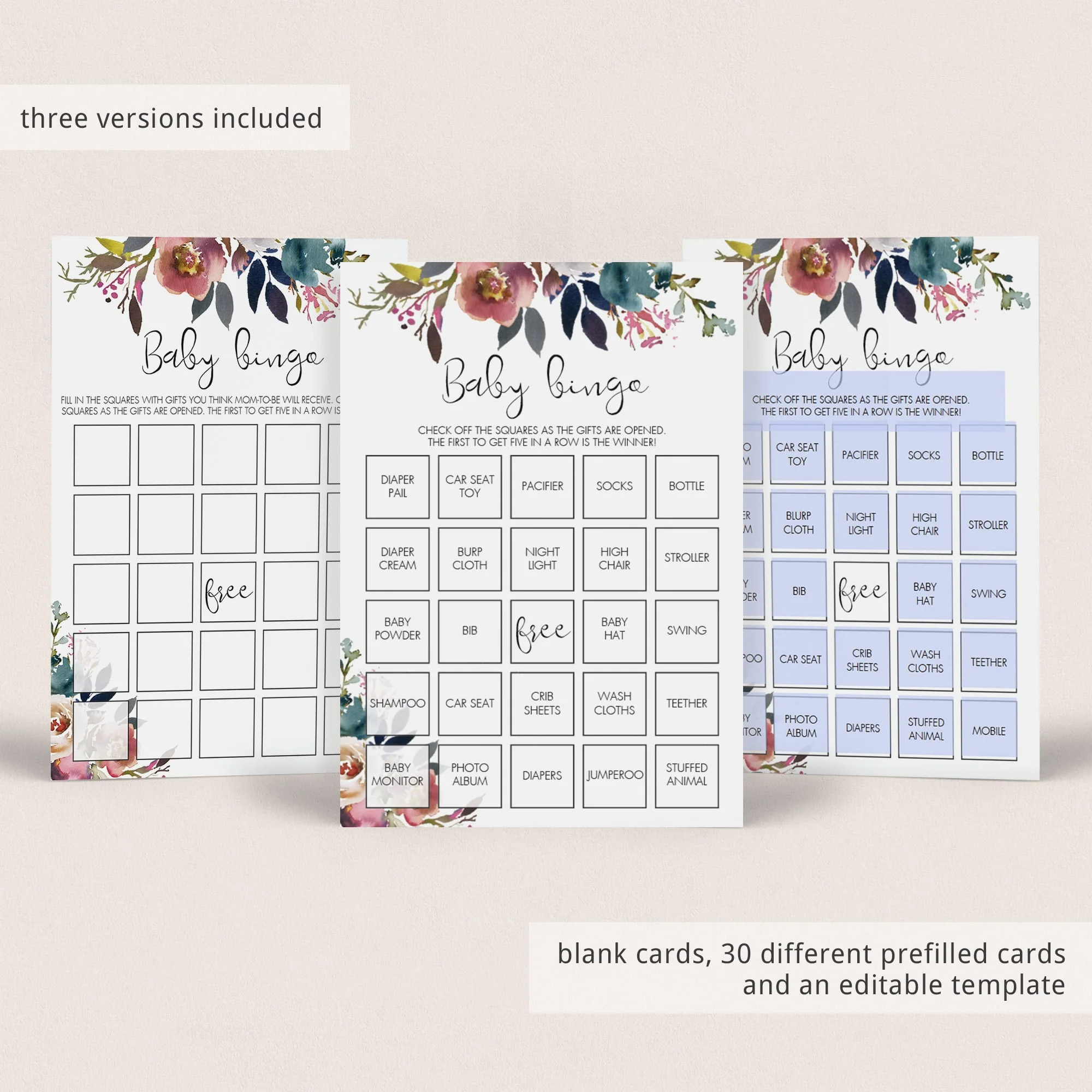Are you hosting a floral themed or boho baby shower? Let not only the mom-to-be enjoy unpacking gifts! Play Bingo with these stunning watercolor floral Baby Shower Bingo cards.
