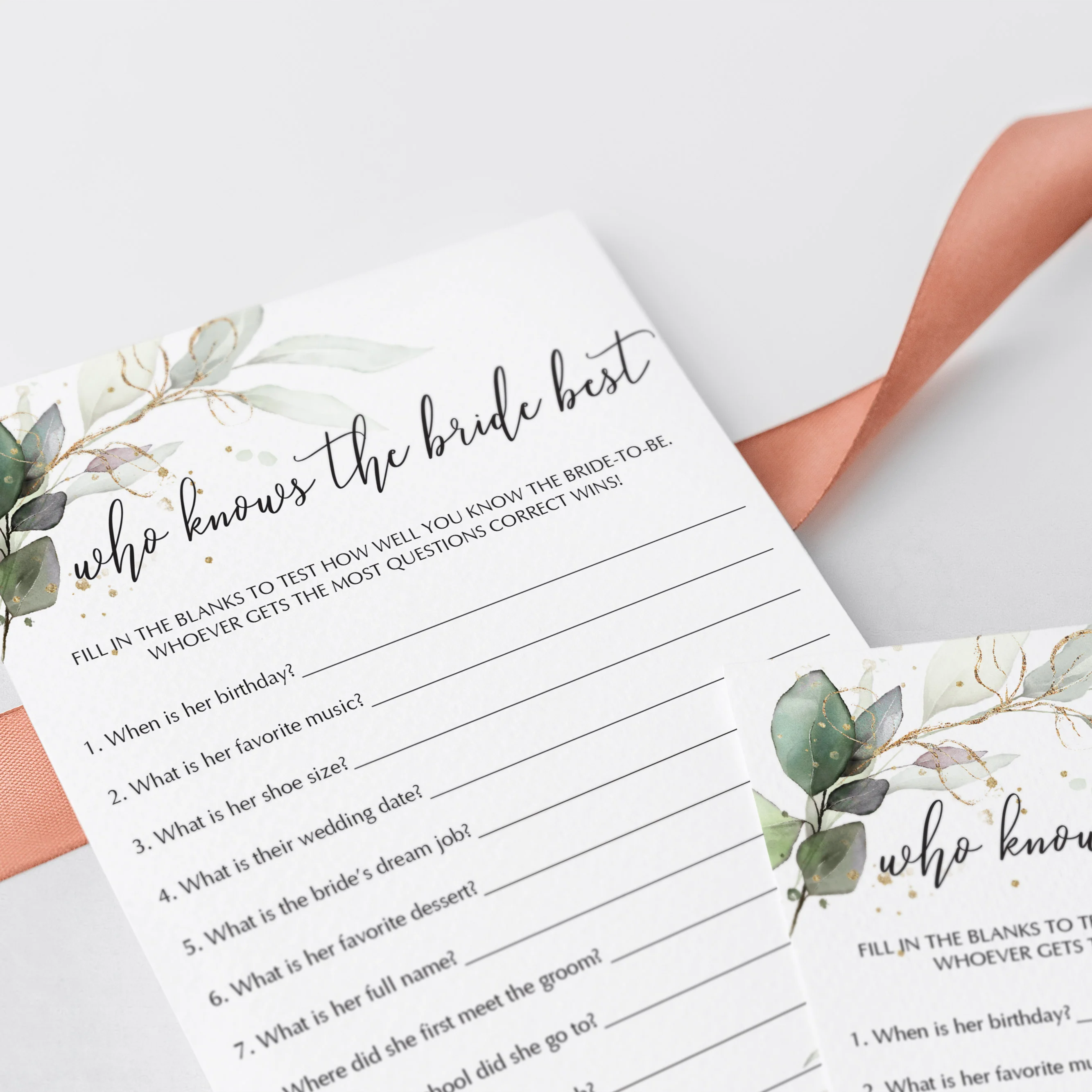 Greenery Bridal Shower Game Who Knows The Bride Best Instant Download