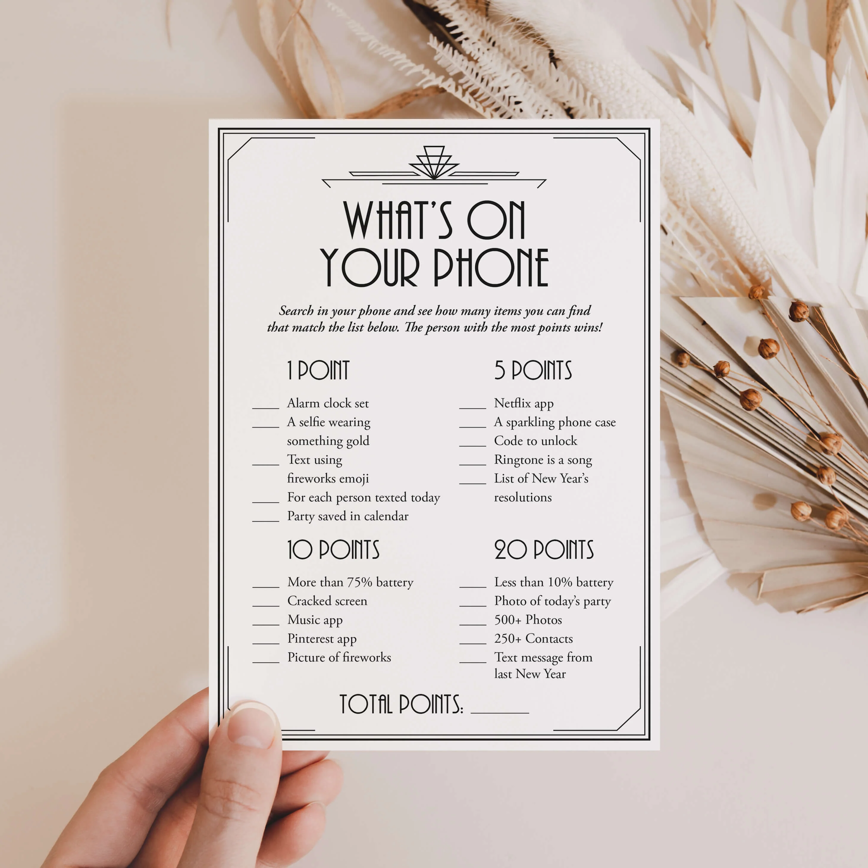 Roaring 20s New Year's Eve Party Game What's On Your Phone