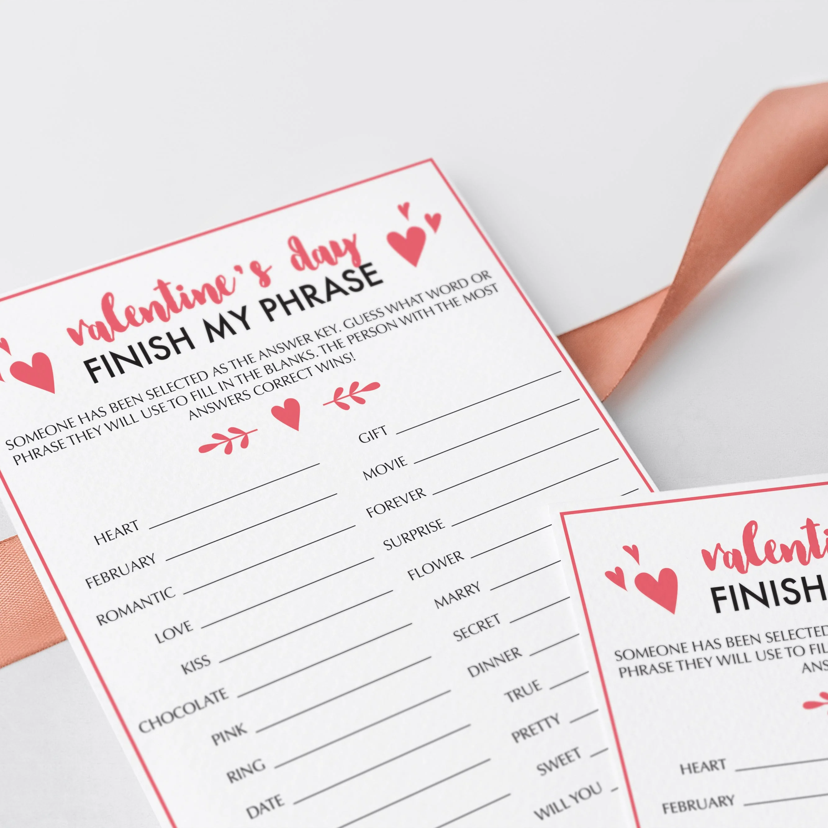 For an in-person Valentine's Day party, download and print the game cards as many times as you need. We recommend printing on a nice heavy card stock for highest quality feel. Print right from your computer in a matter of minutes or have the cards printed at your favorite print shop.